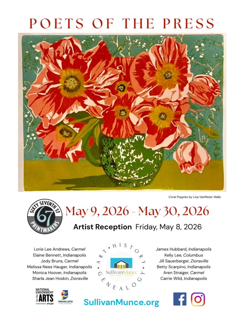 Zionsville, IN – The SullivanMunce Cultural Center is pleased to present Poets of the Press, an exhibition by the 67th Street Printmakers, on view May 9 through May 30, 2026, with an opening reception on Friday, May 8, 2026, from 5 PM – 8 PM, both free and open to the public. All artwork will be available for purchase.