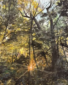 Water, reflections, and scenes from nature are central themes in Miller’s work. His paintings evoke the feeling of discovering a fleeting, beautiful moment—much like pausing on a hike to take in a scenic view. Through his mastery of watercolor, he translates these quiet experiences into luminous, atmospheric compositions that resonate with a sense of calm and connection.