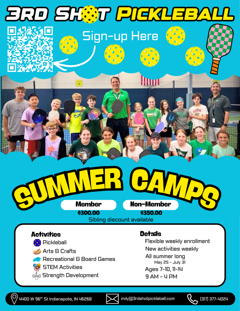 For more information call 3rd Shot pickleball at 317-377-4024.